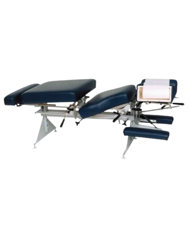 Lloyd's drop design allows the amount of force applied to be equal, whether that force is applied on the right, left or center of the cushion, making them superior to other drops on the market. Our drops are built into the table with controls on each side and are set manually. A specially designed spring release on chest section is optional.The 402 Stationary comes standard with or without Lloyd's Total Drop SystemTM that includes manual cocking forward motion head, chest and lumbar/pelvic drops