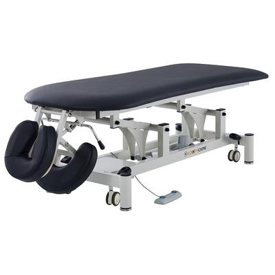 A comfortable and adjustable massage couch with contoured surface to increase patient access. The flexible padded face rest and prone arm rest ensure patient comfort and relaxation during treatment.