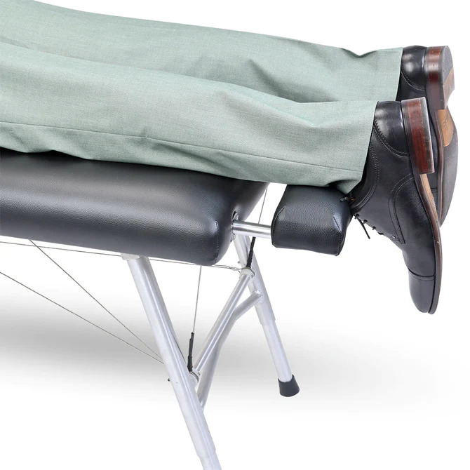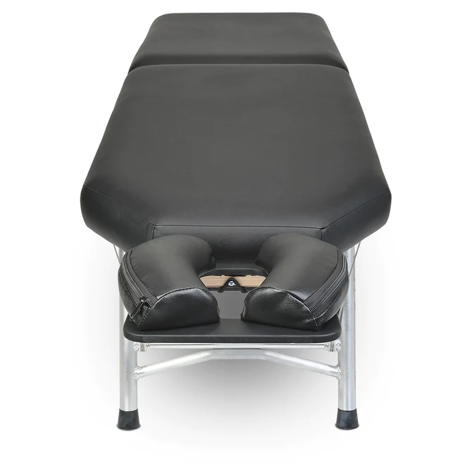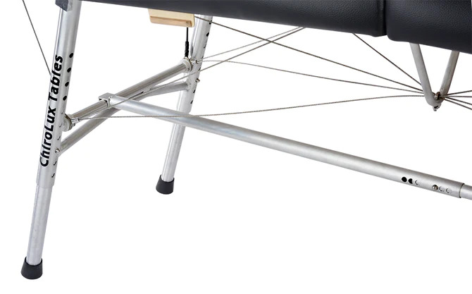 The ChiroLux Plus Chiropractic Table brings the professional-grade durability and portability with the addition of function shoulder cutouts and improved weight capacity. The table’s high-quality synthetic upholstery, 1” thick firm density foam, and functional shoulder cutouts allow for maximum patient comfort, while still providing a firm base for adjustments. Telescoping height adjustment and 5-position Quick-Touch Flexion/extension headpiece ensure that the table fits any patient, therapist, or chiropractor. ChiroLux CheekPads with High Density Foam included with the table provide even more comfort and adjustability to the headpiece.The cable system and aircraft aluminum tubing means that the table is both durable and lightweight. No need to worry about sliding or tipping with the wide stance legs and no-slip-feet. CrossBar allows you to easily convert the portable table into a stationary table with this stationary support rod.